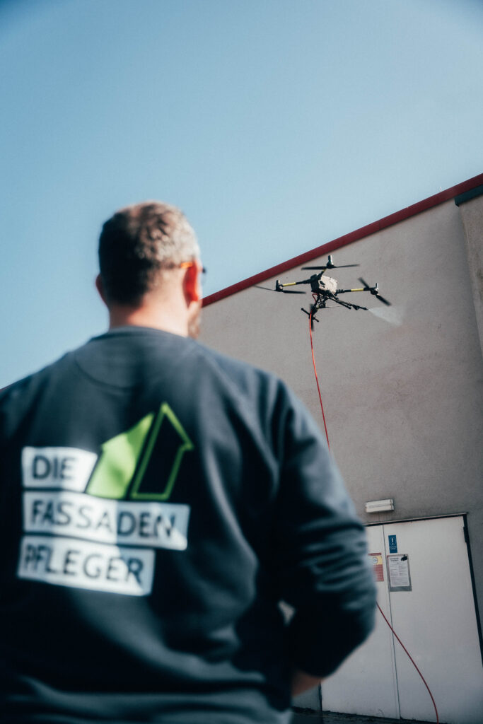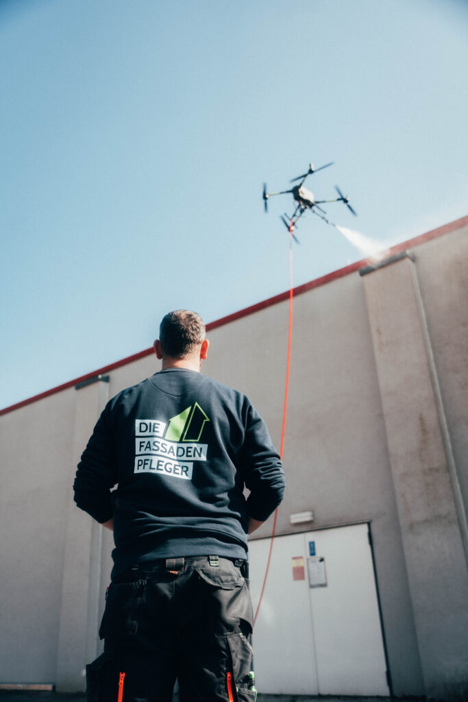 Nicht zwingend. Durch moderne Verfahren – wie unsere Drohnenreinigung – können viele Flächen ohne Gerüst gereinigt werden.